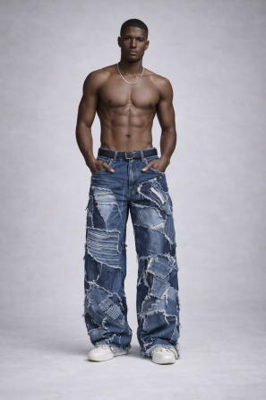 Men’s Wide Leg Patchwork Denim Jeans by Yihan Bronn